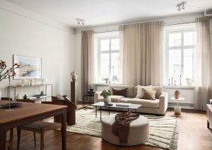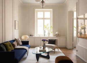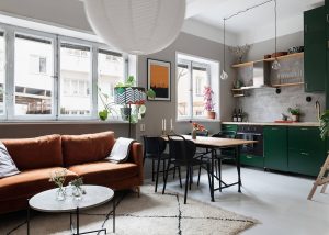 В интерьере этой небольшой квартиры-студии в Стокгольме дизайнеры работали с двумя основными стилями: скандинавским и индустриальным. Серый цвет, белый деревянный пол, мебель ИКЕА и постеры — это всё узнаваемые атрибуты шведского дизайна. С другой стороны, оштукатуренная стена на кухне, черные металлические детали и фанерные мебельные фасады придали интерьерам нотки брутальности интерьерам и атмосферу лофт-стиля. Enjoy! …