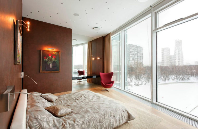 Если очень хочется оставить вид из панорамных окон открытым и при этом не замерзнуть, в добавок к «теплым полам» и конвекторам установите на соседние с окном стены дополнительные радиаторы, классические или высокие в зависимости от площади помещения и свободного пространства для размещения батарей.