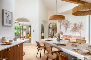 Интерьер этой виллы в регионе Бидар на Атлантическом побережье Франции будто ожил из каталога известного французского магазина Maisons du Monde, но это сравнение ни в коем случае не говорит ничего плохого об этом дизайне. Пространства получились яркими и модными, с уютными тёплыми нотками в декоре. Скруглённые формы в мебели и декоре, экзотические мотивы, элементы ар-деко …