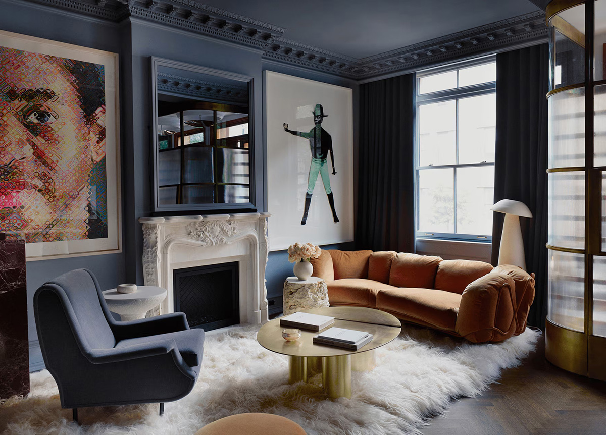 Без единой белой стены, но в драматичных тёмных тонах и со смелым искусством — этот интерьер совсем не похож на типичное пространство исторического дома. Дизайнер Crystal Sinclair преобразила спокойные, но скучные интерьеры старинного таунхауса из красного кирпича в Гарлеме в царство смелых оттенков и эффектных дизайнерских решений. Интересно, что классические детали декора, такие как лепнина и элегантные камины, остаются важными составляющими обновлённого дизайна, и это в сочетании з яркой современной мебелью придаёт интерьеру эклектичной окраски. Прекрасная работа дизайнера!