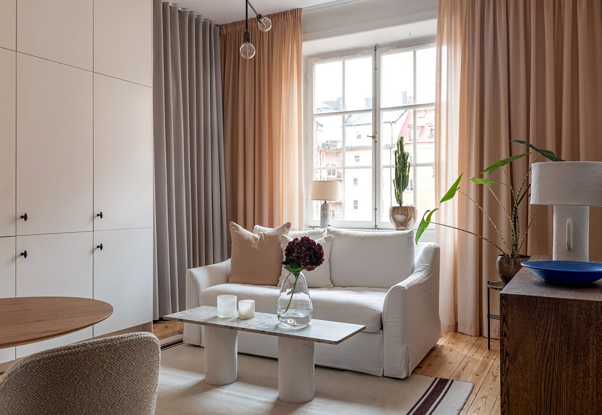 Сегодня у нас пополнение в клубе невероятно маленьких интерьеров — вся площадь этой квартиры в Стокгольме сопоставима с размером одной стандартной комнаты в современных домах. Работая в таких непростых условиях, дизайнеры тем не менее проделали отличную работу по наполнению пространства удобными зонами и уголками, а также нашли место большому шкафу для хранения. И при этому не забыли они и про стиль — интерьер получился также элегантным и визуально приятным. Enjoy!