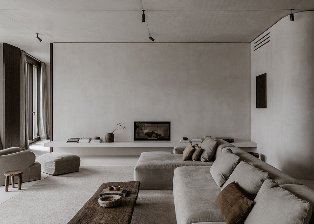 Берлинский район Шарлоттенбург — один из самых живых и творческих в городе, здесь много популярных магазинов, креативных шоу-румов, дизайнерских студий. И словно в противовес такой яркой и насыщенной жизни района дизайнер Annabell Kutucu создаёт вот такой аскетичный монохромный оазис для молодой семьи, в котором минимализм является философией жизни. Фактурные стены и наливной пол имеют одинаковый серый оттенок, а немногочисленная мебели и декор почти не отличаются по цвету, делая интерьер спокойным умиротворяющим. Ну а терраса на крыше лишь усиливает ощущение уникальности этого жилья посреди суетливого мегаполиса. Отличный современный дизайн!