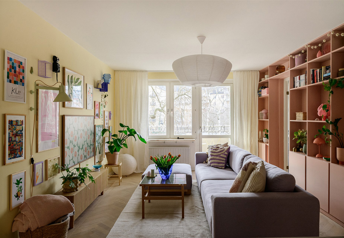 У этой шведской квартиры довольно необычная планировка — открытое пространство кухни-гостиной по сути является проходным помещением, через которое можно попасть в остальные комнаты. Но главная фишка этого жилья — веселые пастельные интерьеры, при этом стены каждой комнаты имеют свой уникальный оттенок. Ещё и замечательная галерея постеров в гостиной прекрасно дополняет общее настроение и образ. Приятного просмотра!