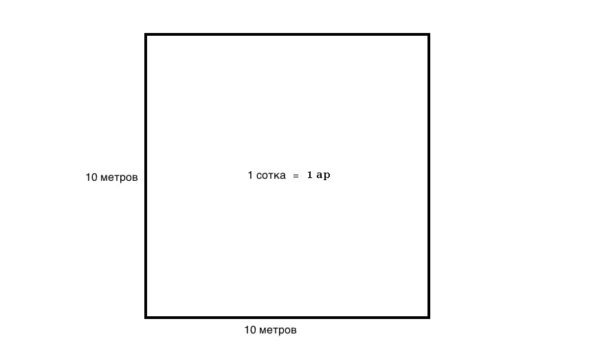 Вы удивитесь, насколько всё просто: 1 сотка – это 100 квадратных метров или ар земли, а площадь в 10 соток соответствует 10х100 м2. Зная метраж сотки, теперь вы легко можете планировать строительство – на сколько квадратов можно построить дом, сколько отвести для других построек, а сколько достанется грядке с клубникой.