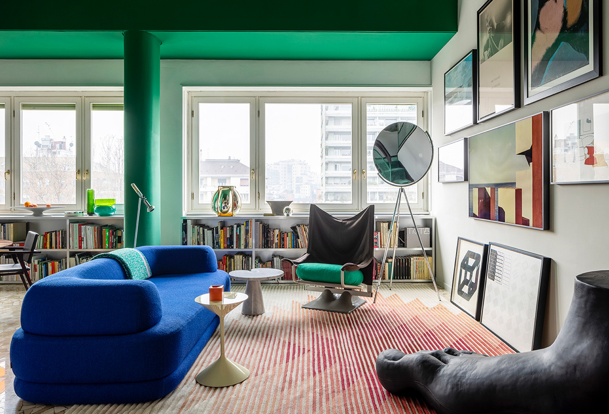 Это уникальный лофт в Милане распложен на последнем этаже модернистского здания 1950-х годов в центре и являет собой лабораторию для цветовых и дизайнерских экспериментов его хозяина архитектора. Необычное пространство со вторым светом и стеклянными стенами наполняют цветовые блоки смелого зелёного, а также неожиданный декор причудливых форм и содержаний. Помимо экстравагантных современных деталей в интерьере много культовых предметов итальянского и мирового дизайна, поэтому жильё получилось таким насыщенным и интересным. Enjoy!