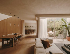Реализация концепции гармоничной интеграции дома в окружающую природу в случае с этим проектом в Лос-Анджелесе от студии WOJR вышла на новый уровень. Здание необычной и даже футуристичной формы было буквально вкопано в холмистый участок, чтобы создать, эффект будто дом вырос из земли. Благодаря этому в интерьерах установилась уникальная атмосфера приземлённости — человек здесь является частью …