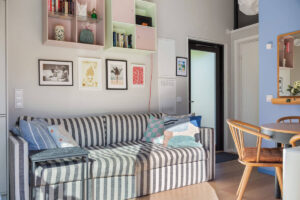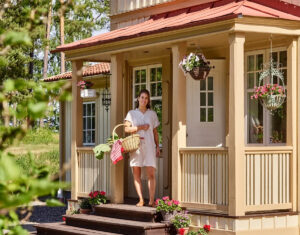 Полосатый диван и пастельный декор: микро-дом на природе в Швеции (25 кв. м)