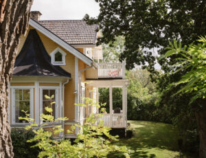 Традиционный скандинавские коттеджи не могут надоесть, ведь они являют собой воплощение вневременного идеала деревенских домиков и всегда выглядят словно с картинки. Особенно очаровательно смотрятся деревянные дома с желтым фасадом, который вызывает улыбку и тепло в душе даже от просмотра фотографий. Сегодня у нас как раз такой коттедж — старинный, желтый, утопающий в зелени. А ещё …