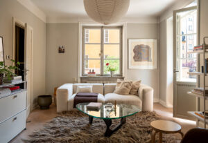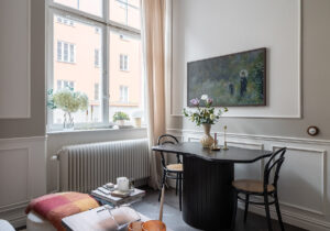 Благодаря большим окнам на две стороны, эта мансардная квартира под крышей в Стокгольме получает приличное количество естественного света, а стеклянные межкомнатные перегородки позволяют ему прекрасно распространяться по интерьерам. Главное пространство квартиры — открытая гостиная с кухней — имеет также выход на довольно просторную террасу, а светлый декор состоит из модной мебели со скруглёнными углами и …