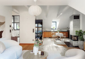 Шведская мансарда со светлыми интерьерами и модным декором (74 кв. м)