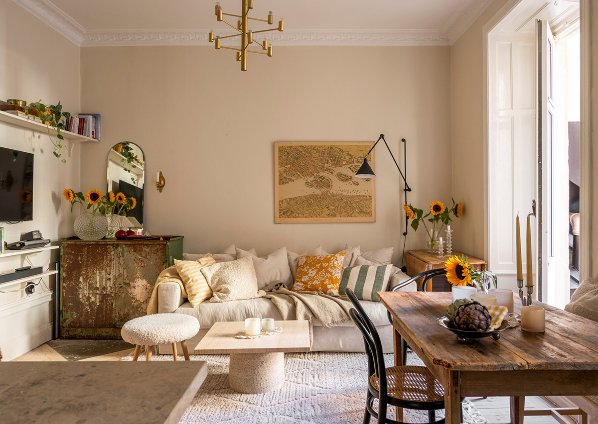 У этой небольшой квартиры на первом этаже жилого дома в Гётеборге имеется своя небольшая терраса, выход на которую осуществляется из гостиной. Это сходство с загородным жильём и вдохновило дизайнеров на необычный декор — в интерьере преобладают винтажные детали и предметы в стиле рустик, свойственные, как правило, деревенским домам. В то же время, благодаря этому выбору интерьер получился очень тёплым и душевным. Enjoy!